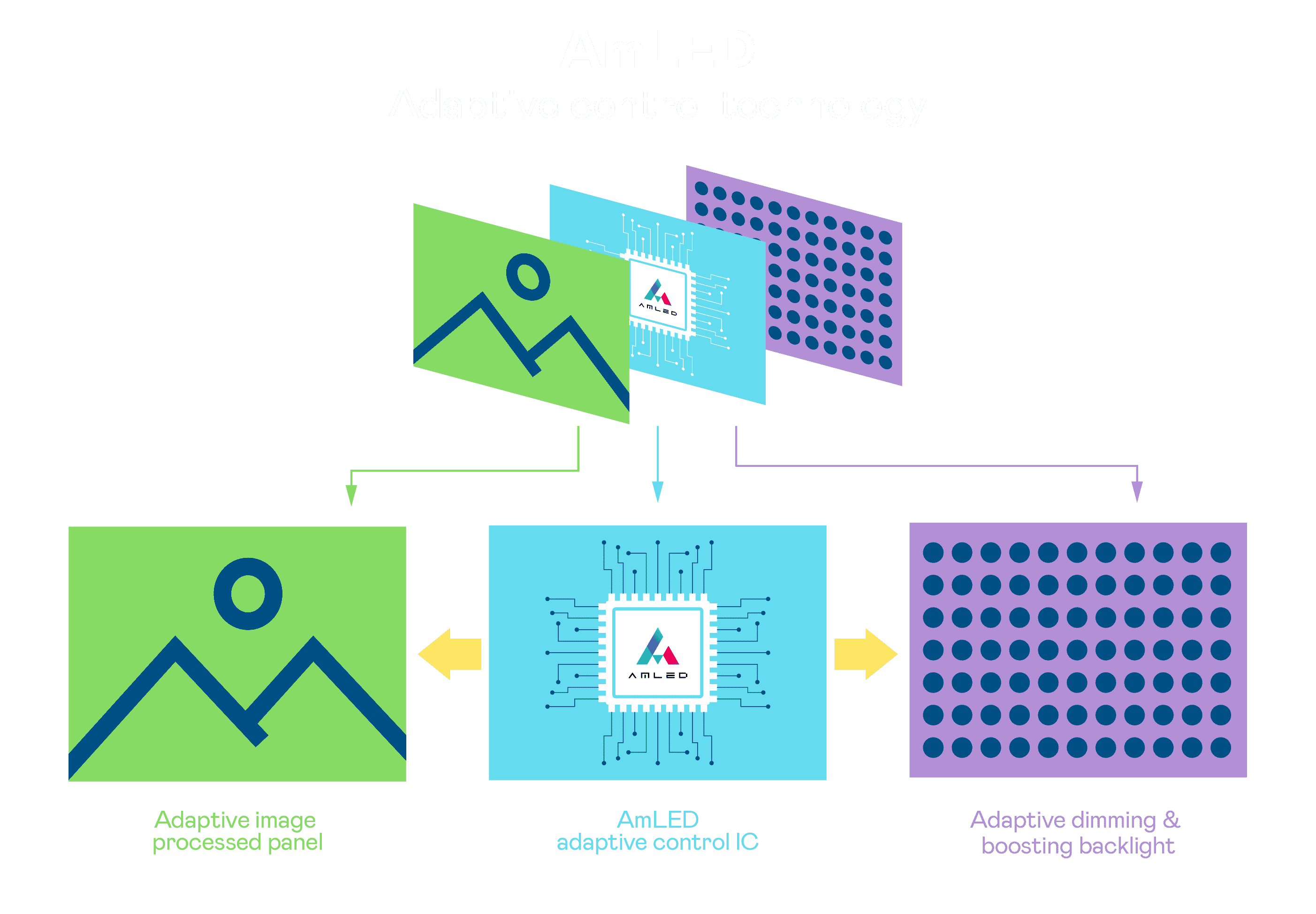 AmLED 具备更省电与低蓝光特性。。。。与一般的 LED 背光显示技术相比,,,由于 AmLED 常时处于局部调光状态,,,其功耗仅有前者的 50% 左右,,,同时 AmLED 还具备低蓝光特性,,满足长时间使用的护眼需求。。。
